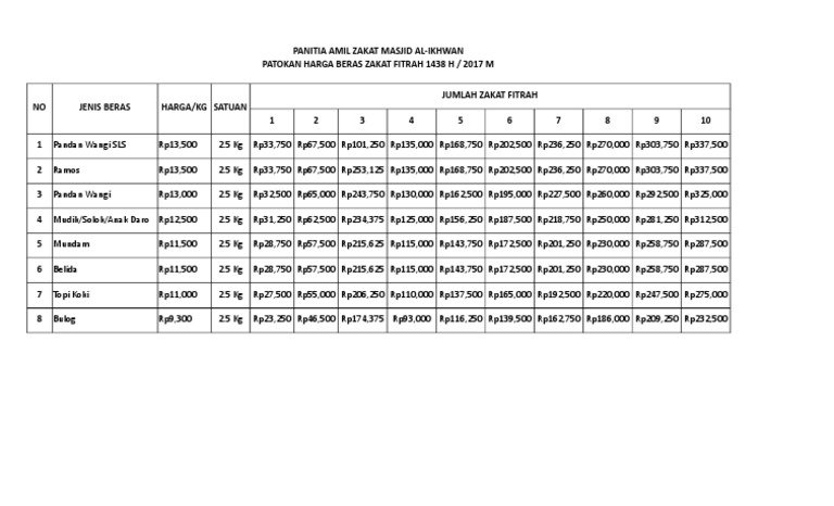 Besar Zakat Fitrah Yang Harus Dibayar Indonesia Baik